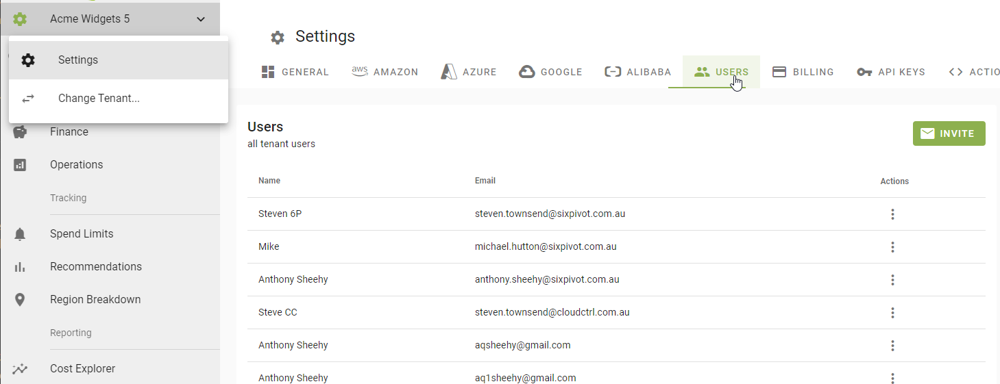 Once you have registered your user account and setup your billing profile you will be able to invite other users. This is done through Users tab of the settings screen.