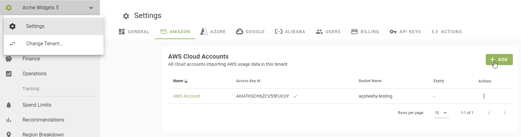 There are many cloud vendors to help support your business. In Cloud Ctrl, each connection to a cloud vendor is called a 'Cloud Account'. Connections to a cloud vendor, can be managed on the Setting screen, Cloud Accounts are added on the tab relating to the vendor you wish to connect to.