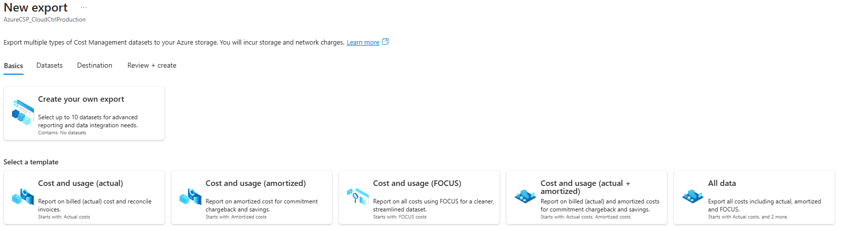 Note: The export must be the "Cost and usage (actual)" template. This may not be available on all subscription types.