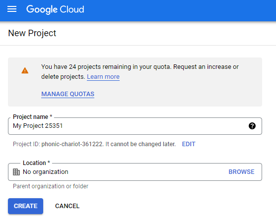 In the Google Cloud console, on the project selector page, select or create a Google Cloud project.