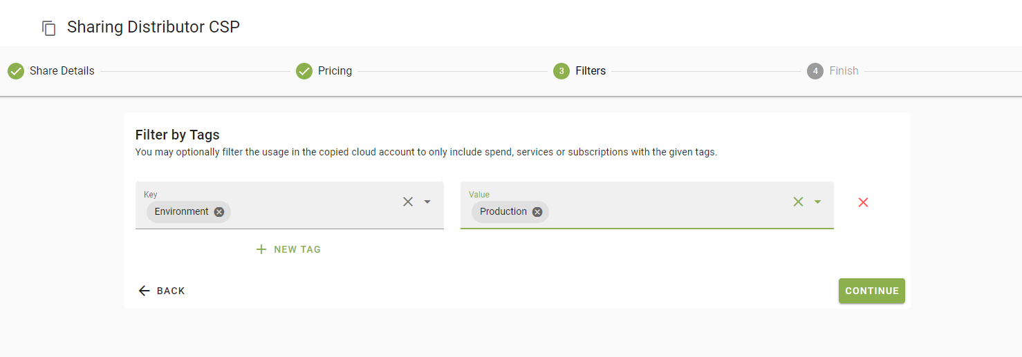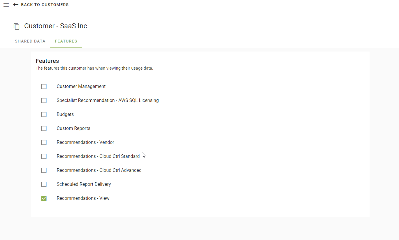 With the shared data feature you can share usage data from any of your cloud accounts to a customer.