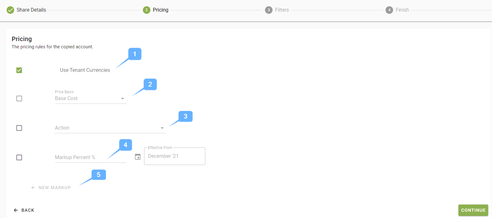 As part of the share process you can modify the pricing that is displayed / calculated for your customers to see.
