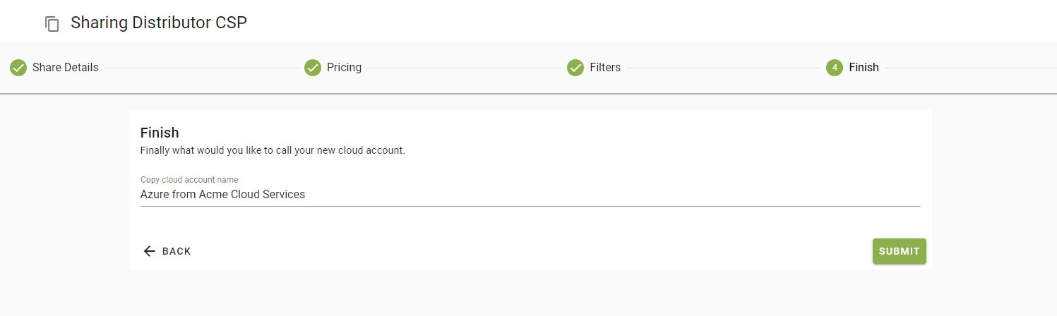 The final step is to setup a name for the Cloud Account as it will appear in your customers account.